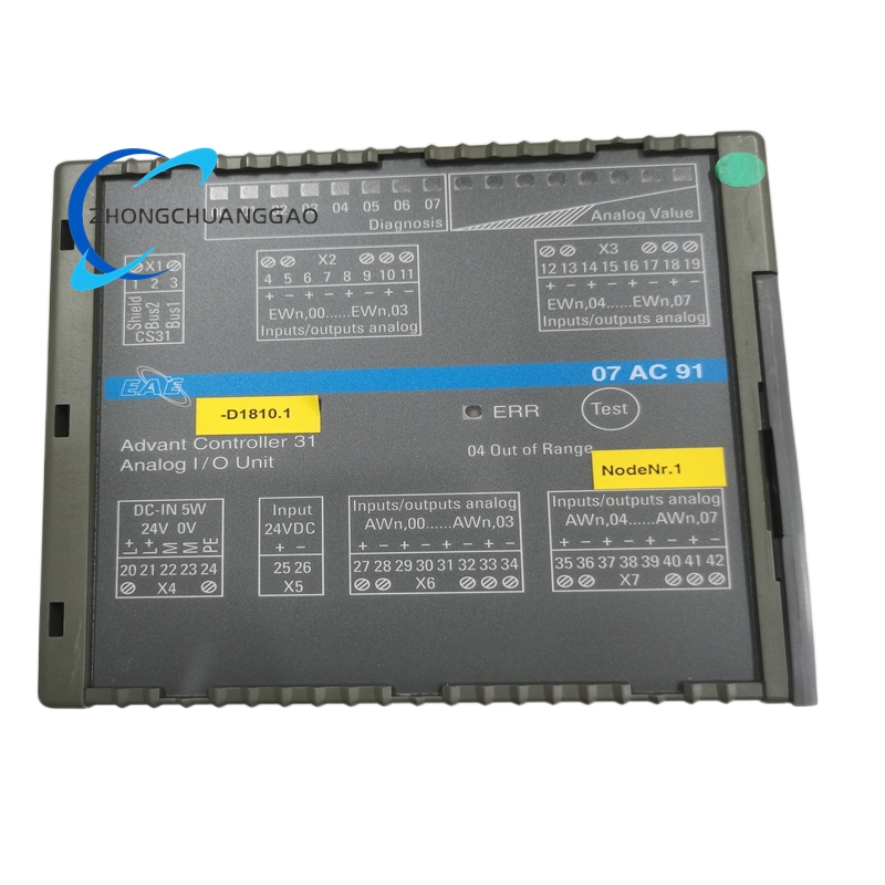 The ABB GJR5252300R3101 07AC91F is a high-performance analog input/output module designed for industrial automation and control systems. It facilitates precise data acquisition and control by processing continuous analog signals, such as voltage and current, which are essential for monitoring and regulating industrial processes. This module is part of the ABB AC800M series, ensuring compatibility with a wide range of industrial automation equipment.