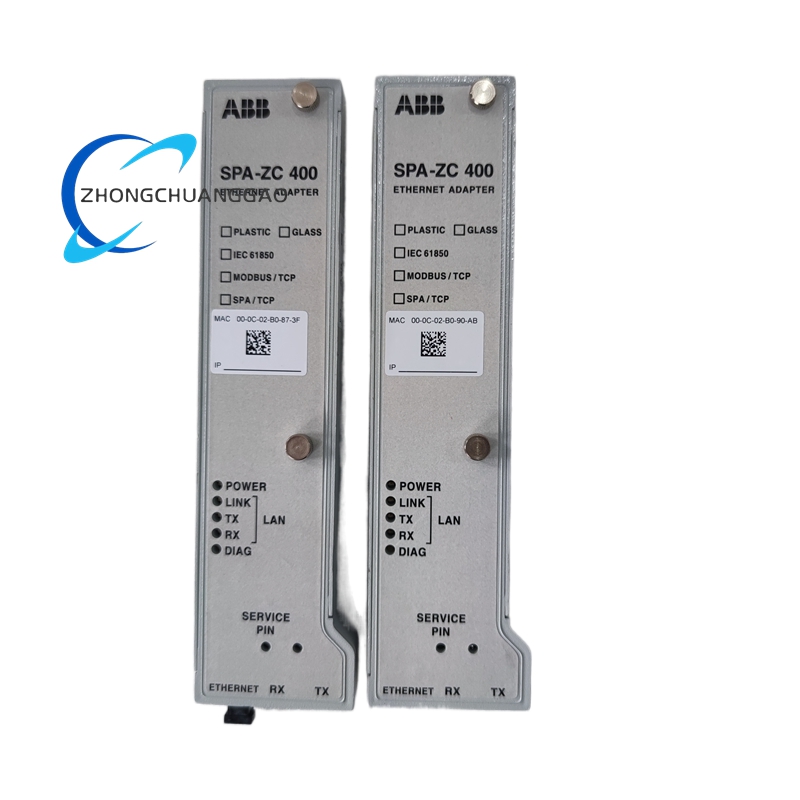 The ABB SPA-ZC 400 is a communication protocol converter designed to facilitate seamless integration between legacy protection and control devices and modern Ethernet-based networks. It serves as a bridge between devices such as REF 541/3/5, RET 541/3/5, and REM 543/5 and IEC 61850-compliant systems, enabling efficient data exchange and interoperability. The module supports multiple protocols, including IEC 61850-8-1, SPA TCP/IP, and Modbus TCP/IP, ensuring compatibility with a wide range of industrial automation equipment.
